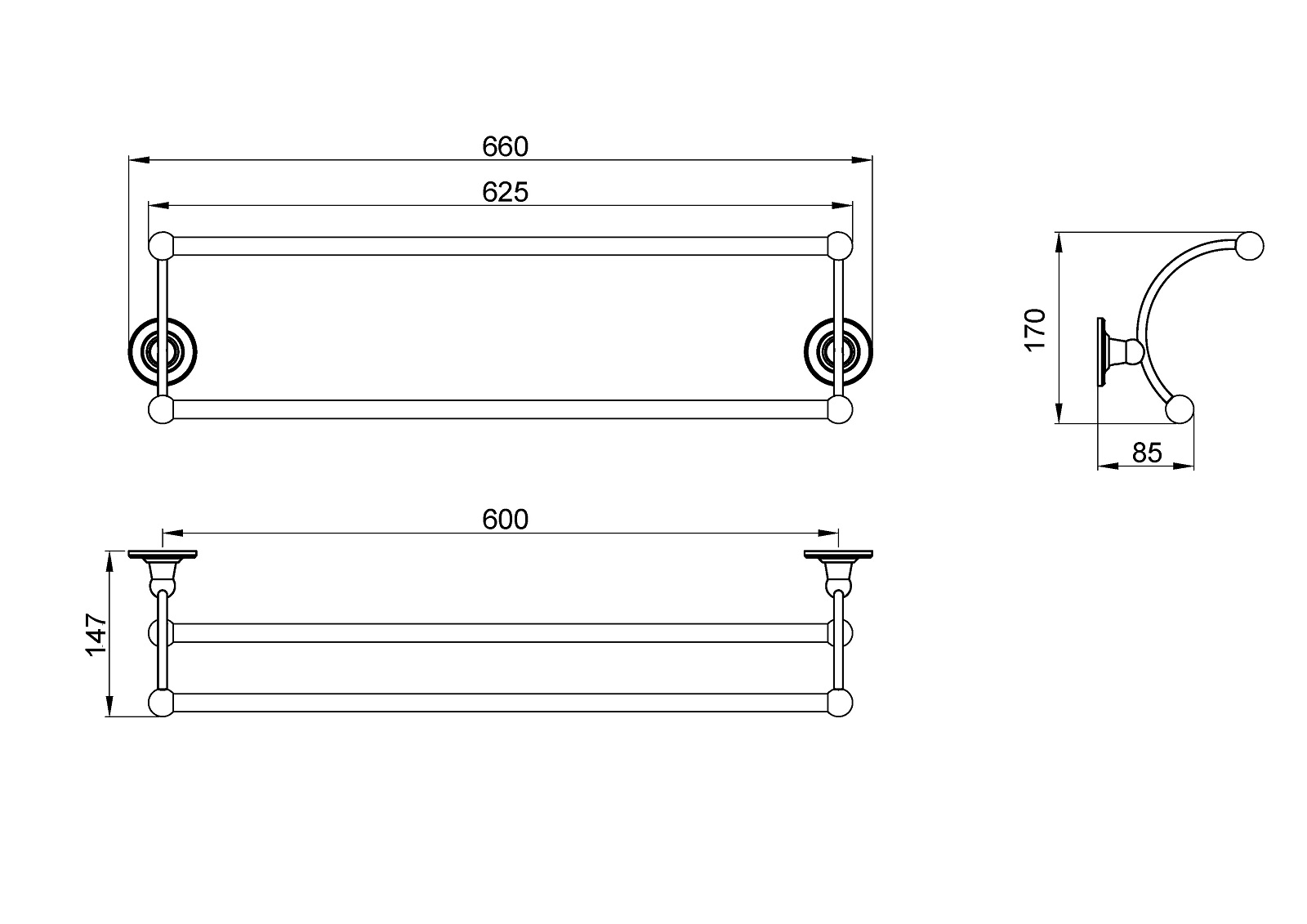 Полотенцедержатель двойной, 750 мм AM-6636B-30 Хром ART&MAX